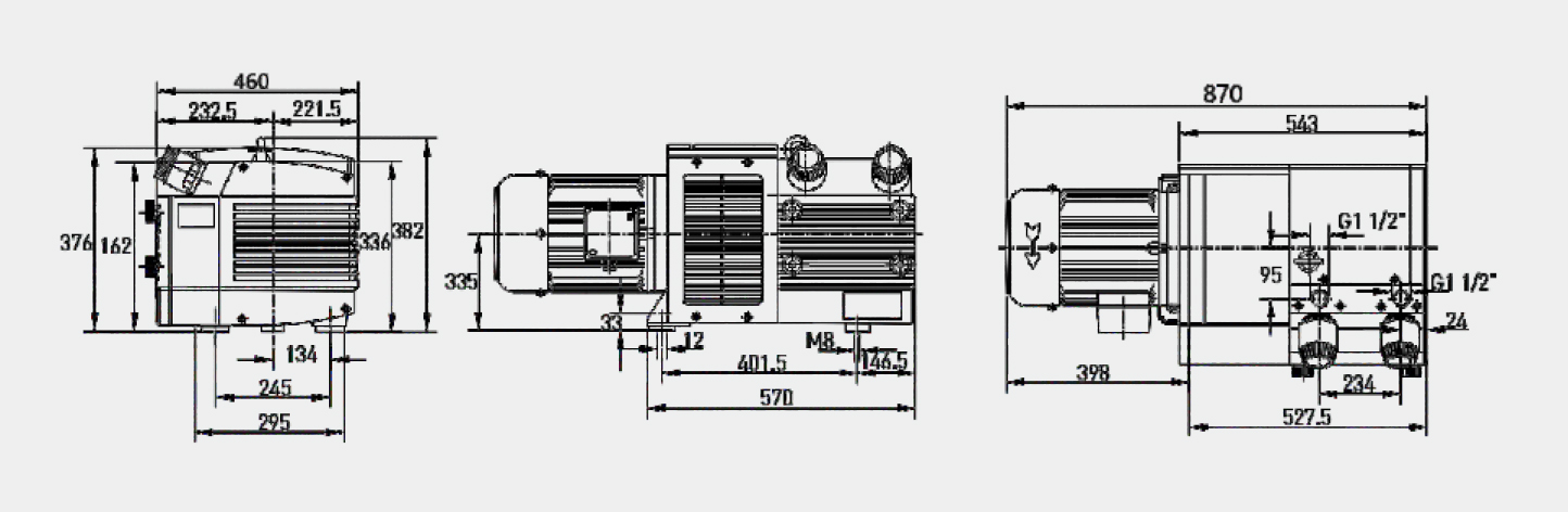 电机功率:4.0 Kw 极限真空:150 mBar 额定电压:200-240△/345-415Y 额定流量:140 m3/h 额定电流:18.1/10.5 A 最大吹力:0 mBar 噪声等级:76 dB(A) 产品重量:115 Kg